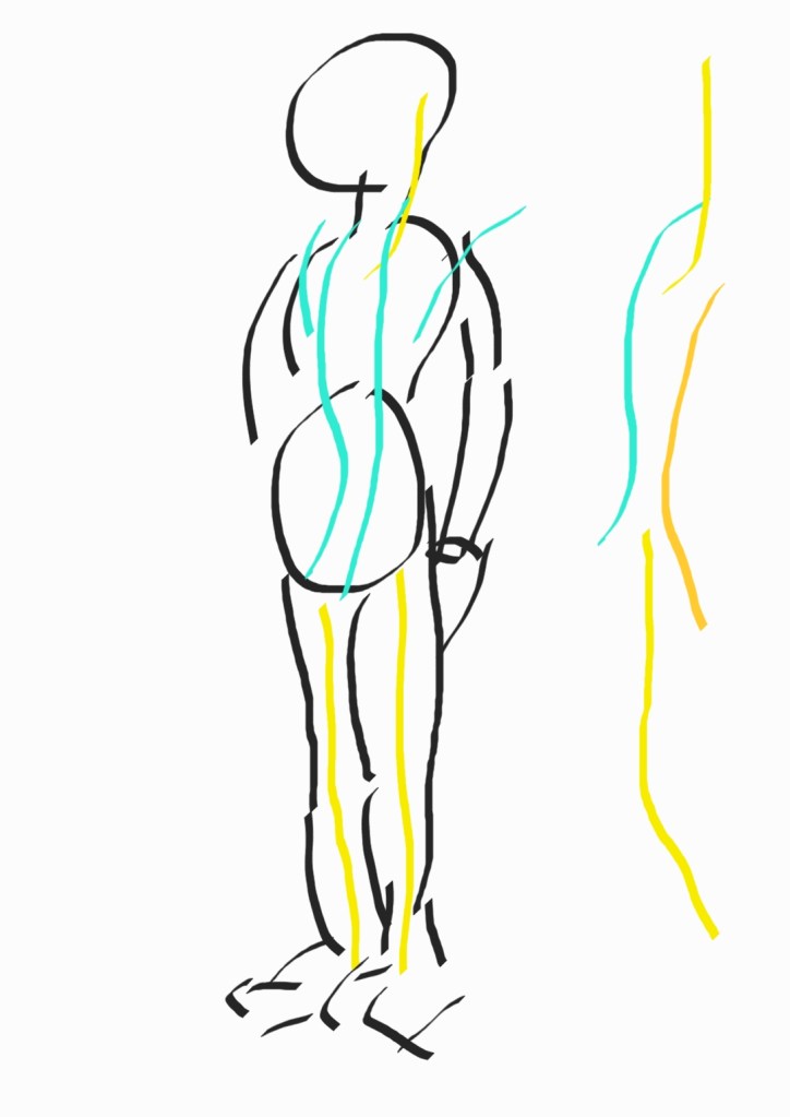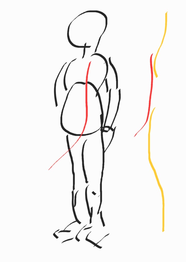 Because the human core is designed for forward movement it’s axis is the spin and quite close to the back. If one side of the back muscles groups isn’t holding the back straight, I think one of the best images is to imagine is of several long inflatable cells. To correct this I think imagining the muscles on the concave side filling up and supporting each other to allow the spine to elongate is a great cue.