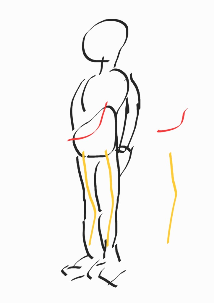 The state in the picture with orange is how I related to my core for most of my existance. People talk about things like your glute muscles being turned of. To simplify this state the core is mostly restricted and a lot of information coming from there is turned off. I think in a lot of these cases people use there limbs more to determine body positioning.